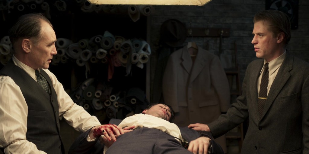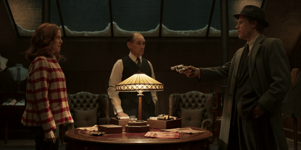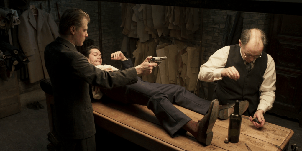 Le film The Outfit est donc le récit d’une rivalité gagnante entre des groupes mafieux issus d’Europe et prospérant aux États – Unis. Bien qu’ennemies, ces factions présentent la même esthétique : costumes de bonne coupe, feutres à calotte pointue style Borsalino, colt dans un holster d’épaule, cravate pittoresque, chemise constellée de sang…
