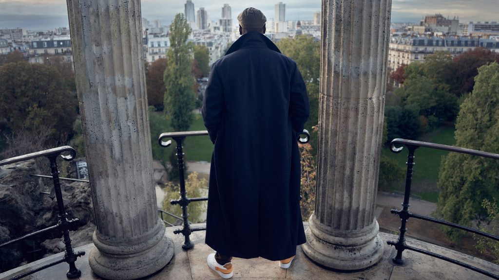 • L’iconique Trench – Coat : Omar Sy arbore sur les affiches manteau ample qui lui apporte une fluidité et lui donne un air d’oiseau nocturne.