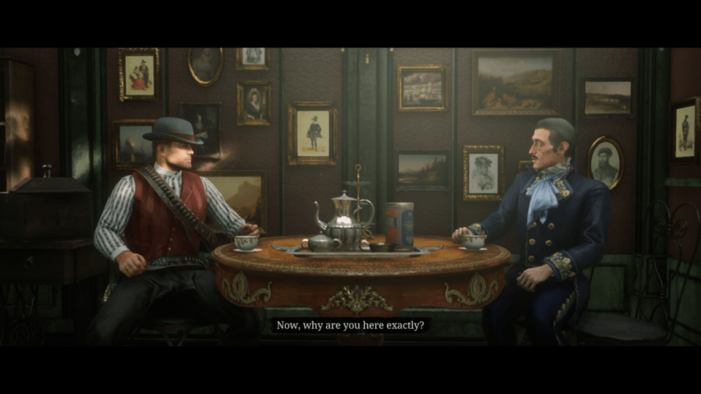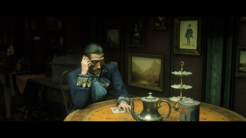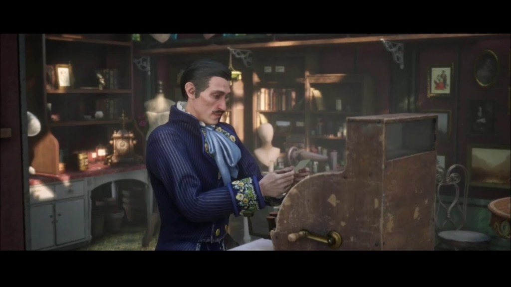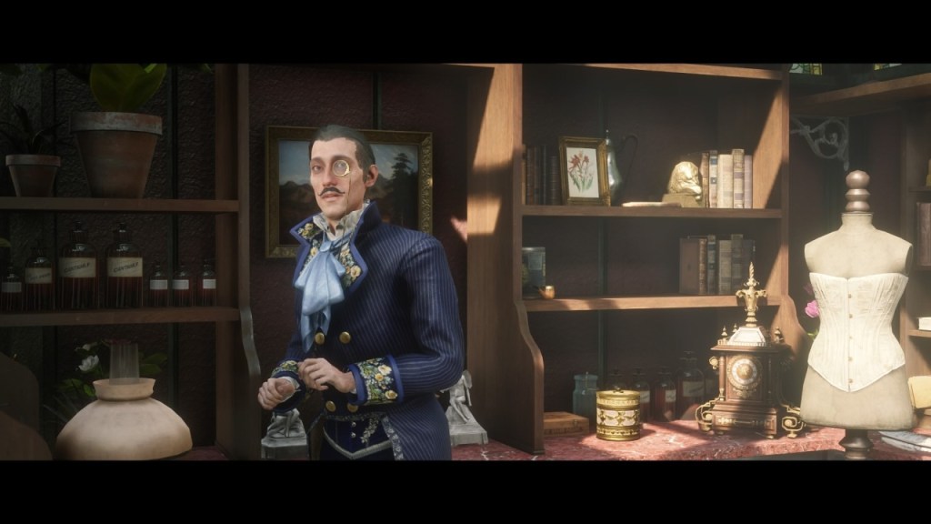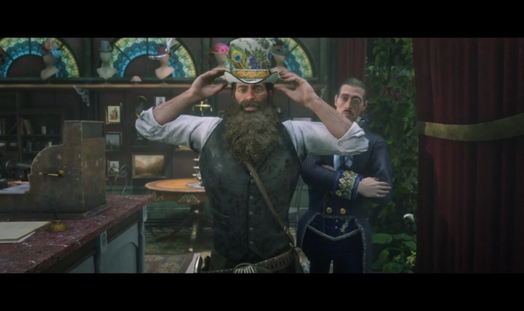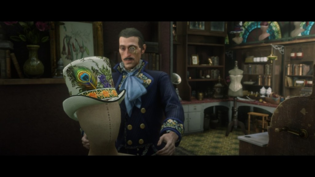 À l’intérieur, des mannequins de coutures, tout le nécessaire d’un chapelier, des tableaux enluminés, des ouvrages aux couvertures raffinées et un service à thé digne d’un anglo – saxon. Rappelons d’ailleurs que le terme Wasp ne s’est démocratisé qu’en 1920, or l’intrigue de Red Dead Redemption 2 se déroule de 1899 à 1907.