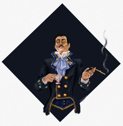 Le mot redingote vient d’ailleurs de l’anglais ‘Riding Coat’ (veste d’équitation); si le terme ne renvoit pas aux talents de cavalier d’Algernon, il évoque son lignage victorien. En effet, cet habit était très en vogue dans l’Angleterre de 1860, avant d’être peu à peu remplacé par la veste.