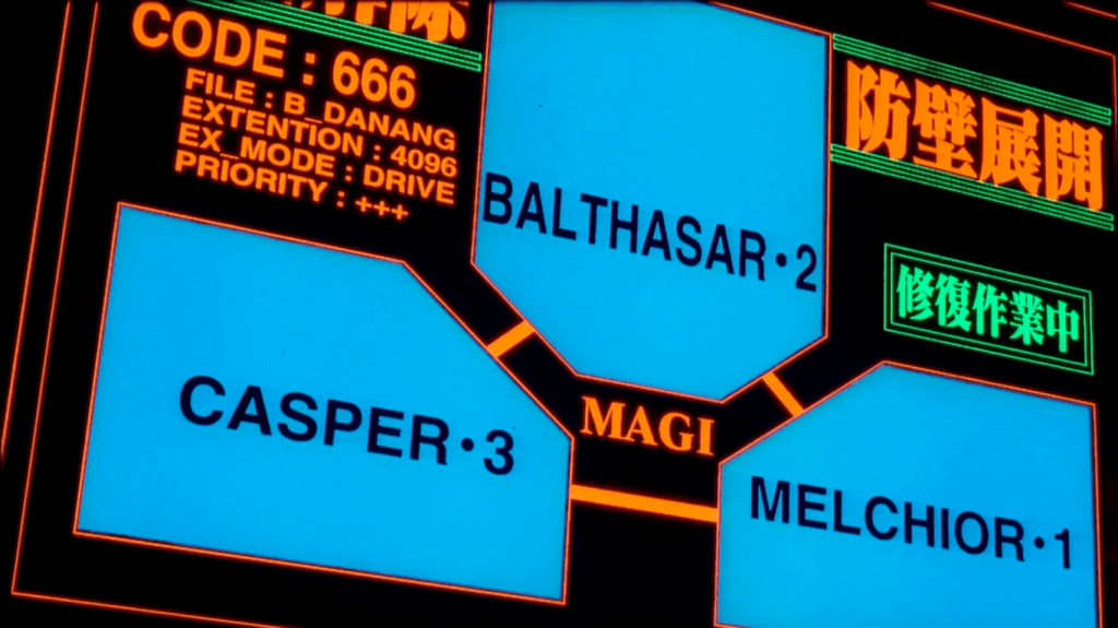 Sans oublier la figure des Rois Mages que l’on retrouve avec le S.C. Magi System (マジックシステム, Majikku shisutemu), ce trio de super-ordinateurs imaginés par le Dr. Naoko Akagi lors de ses recherches sur la bio-informatique au sein de la Gehirn (ancienne Nerv).