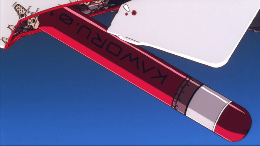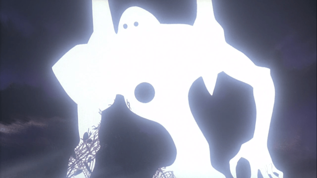 Tous les artefacts désuets autant que les faux concepts empêchant l’émergence de l’être unifié doivent être supprimés ; d’où la propulsion de la lance de longuine en orbite lunaire et l’érection du projet Evangelion, qui n’est qu’une vaste tentative de dissolution de l’enveloppe corporelle.