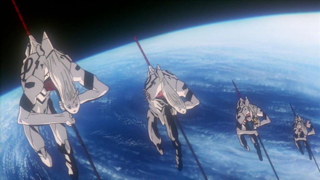 Au cours des 26 épisodes de la série, les Evas n’auront de cesse d’empêcher les Anges de pénétrer dans les sous-sols du Geofront, lieu de conservation d’Adam.