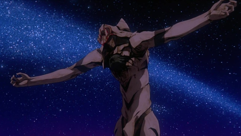 De cette programmation céleste découle une horreur cosmique très lovecraftienne, représentée par les ‘Anges’ qui sont moins des messagers du mal que des forces du chaos ; incarnée par les Evas, puissances synthétiques construites pour ordonner ces forces ; et constatée par les hommes, indétrônables jouets de la fortune.