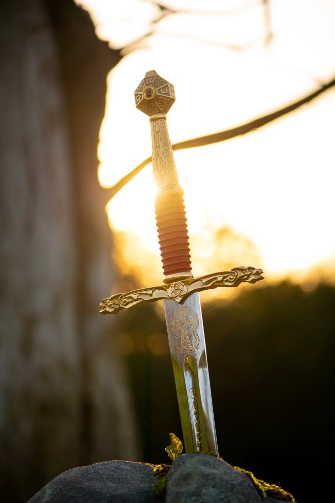 Le Roi Arthur n’est donc pas une figure issue du moyen âge central, même si sa popularité en France a été portée par des écrivains de cette période, notamment Chrétien de Troyes à qui on doit la toute première mention de l’épée du Roi Arthur sous le nom d’Excalibur.