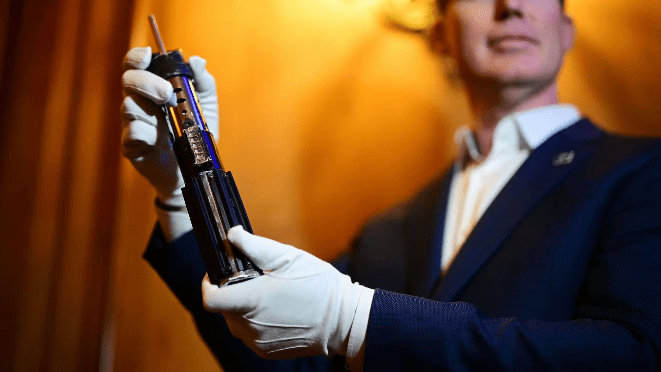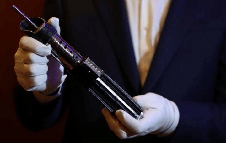 Le sabre laser de Dark Vador, utilisé dans L’Empire contre-attaque et Le Retour du Jedi, est actuellement exposé à Londres et sera mis aux enchères à Los Angeles du 4 au 6 septembre 2025.