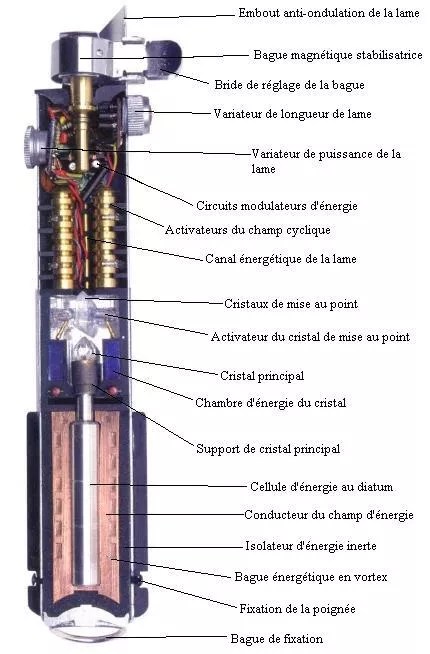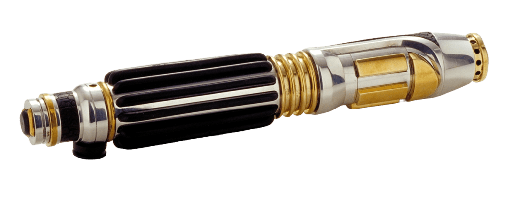 Le sabre laser est l’instrument de combat des chevaliers qui utilisent la Force, qu’ils appartiennent au Côté Obscur ou au Côté Lumineux. La lame est un faisceau d’énergie pure généré par trois cristaux polis intégrés dans le manche.