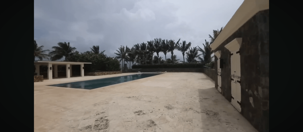 Eau turquoise, pelouse verdoyant au soleil radieux, quelques vaches qui broutent paisiblement : le cadre de Little Saint James est pour le moins idyllique. L’île disposait d’une résidence principale, de villas, d’un héliport, d’un port et d’infrastructures luxueuses ; un cinéma, une bibliothèque et d’autres quartiers présentant une décoration plus que douteuse.