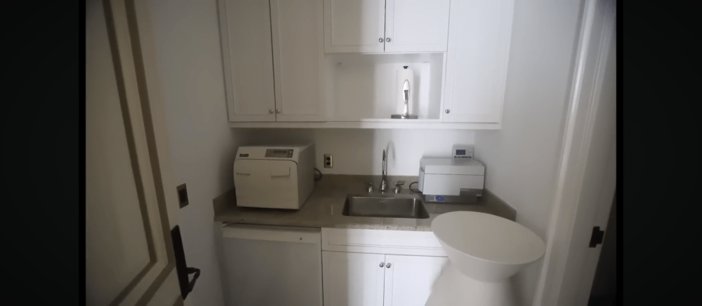 Notamment un cabinet médical aux instruments suspects (notamment un stérilisateur chirurgical et un nettoyeur à ultrasons) et des inscriptions à la craie sur certains murs (« pouvoir », « tromperie », « Miroir dans le visage »).