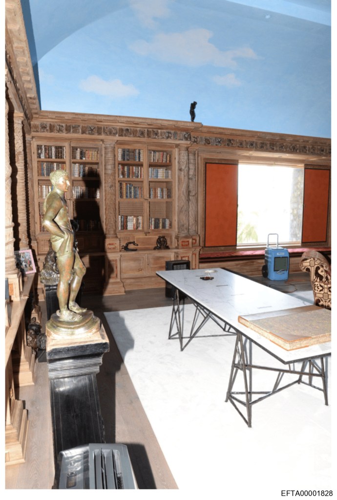 Ces pièces auraient été expédiées à sa résidence aux Îles Vierges américaines, étiquetées comme « œuvre d’art » pour passer la douane. De la Kiswah, Epstein à fait un tapis pour le vestibule de sa villa.