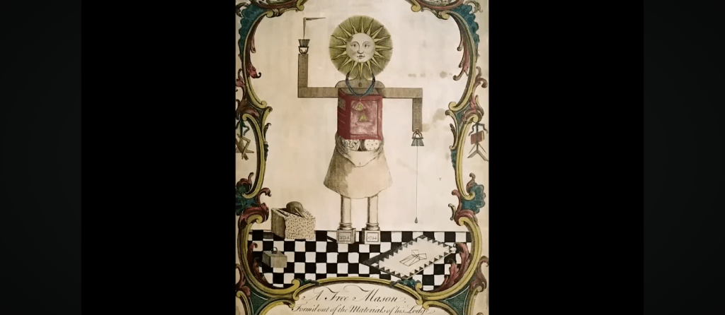 Une horloge solaire, tracée à rebours du bon sens et ressemblant au symbole maçonnique datant de 1754 intitulé « l’homme maçon », semble révéler un terrifiant ultimatum.