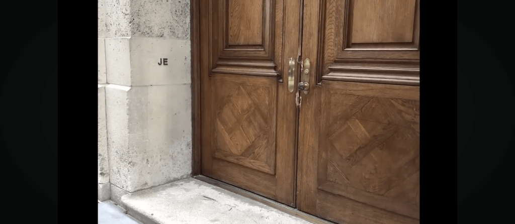 Le bâtiment, perché sur une falaise, comportait des portes peintes en trompe-l’œil aux côtés desquelles étaient inscrites les initiales J.E., comme un clin d’œil à l’entrée de l’appartement new-yorkais.