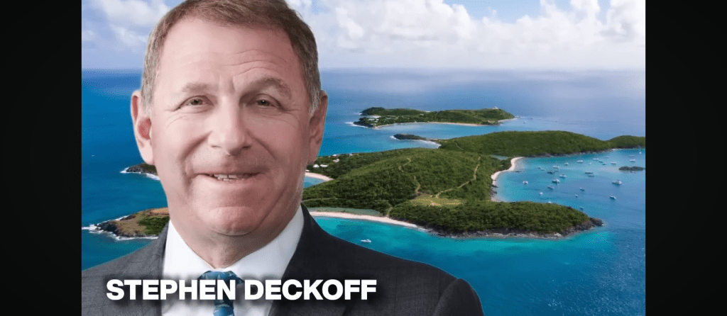 En mai 2023, l’île a été rachetée par le milliardaire Stephen Deckoff pour 60 millions de dollars (54 millions d’euros). Cette somme incluait en fait le rachat combiné de deux îles ; Little Saint James mais aussi Great Saint James, plus vaste (64 à 65 hectares).