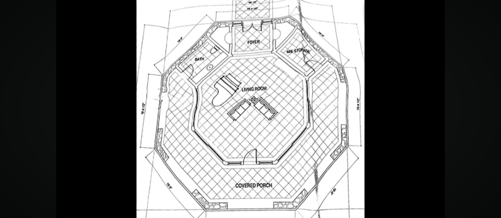 Initialement conçue comme une « salle de musique » selon les plans, son apparence finale — écartant le projet octogonal initial — a suscité de nombreuses spéculations.