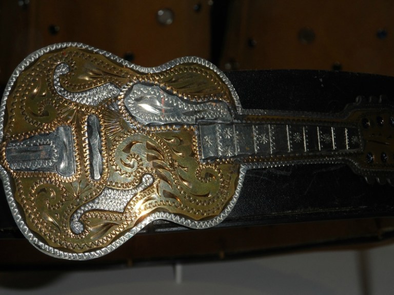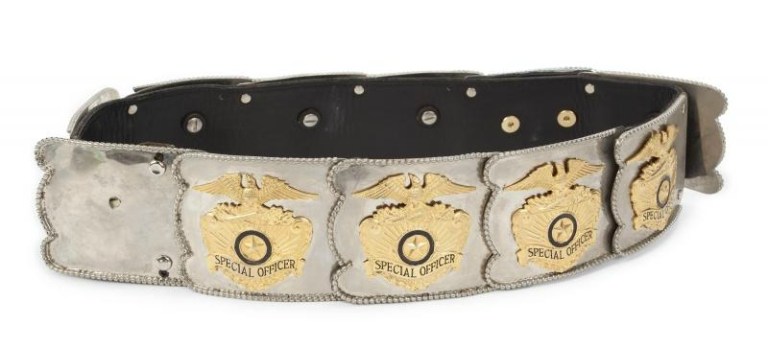 Pour le Bad Tour, la boucle de la ceinture représente une étoile (de sheriff?) surmontée d’un aigle aux ailes déployées, symbole de l’autorité impériale, le tout entouré de branches de laurier, symbole de la gloire …. Les images sont très parlantes: une volonté assumée pour Michael Jackson de devenir le King.